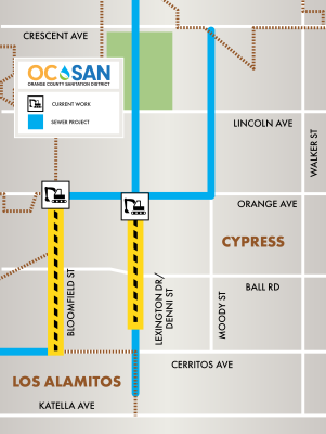 The regional sewer line in the cities of Cypress, Los Alamitos, and La Palma is approximately 50 years old and in need of upgrades. The Cypress Trunk Sewer Project will focus on enhancing about 7 miles of sewer, replacing portions of the pipe with larger diameter pipe to increase the capacity, or rehabilitating other segments of pipe to extend the life of the sewer system. Approximately 100 manholes will also be replaced and/or rehabilitated. These repairs will extend the life of the sewer pipes by another 50 years.